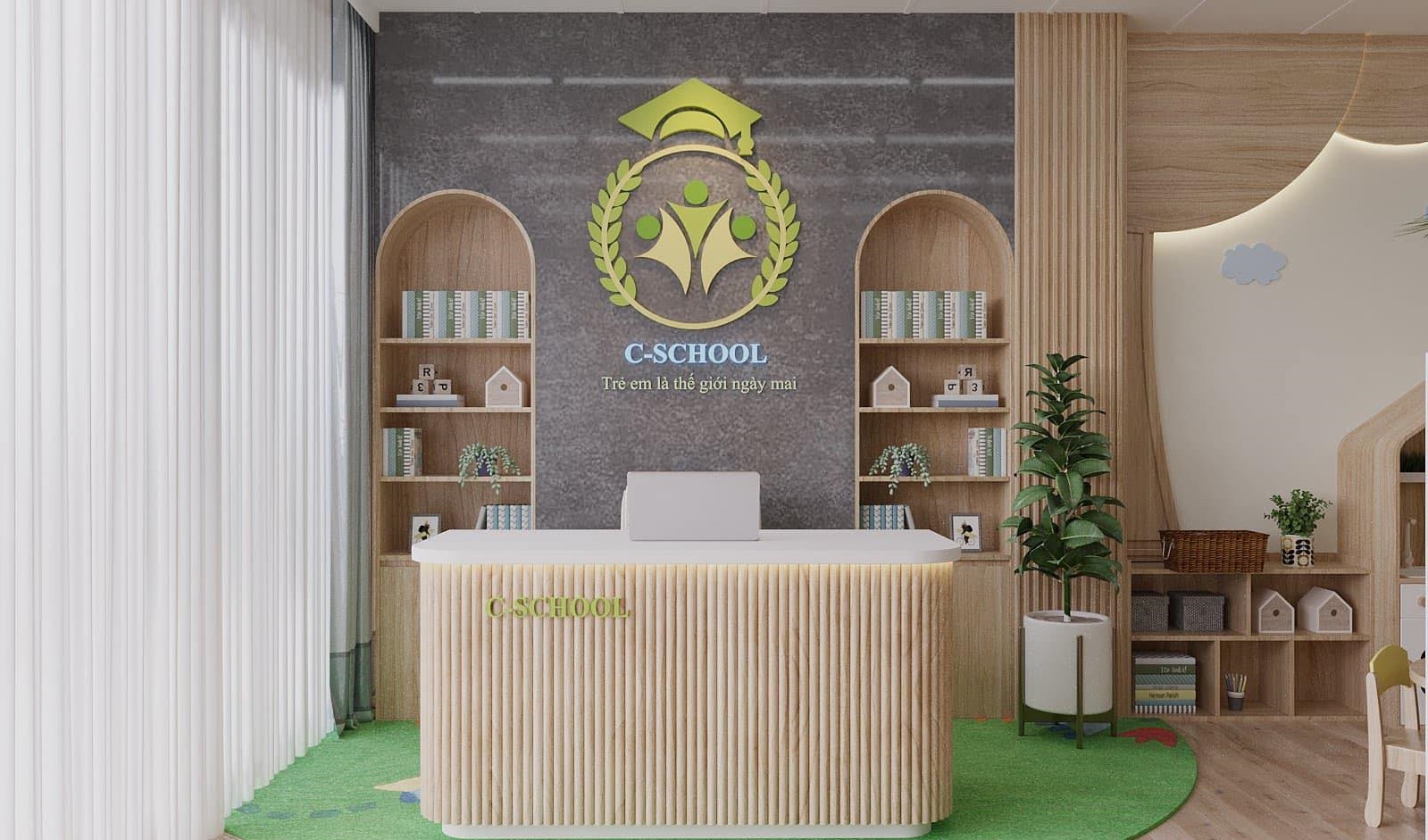 Phòng học luôn rộng, thoáng, nhiều phòng học chức năng và ánh sáng tự nhiên. C- SCHOOL luôn cố gắng xây dựng cho các con một “ngôi nhà trẻ thơ” hạnh phúc và một môi trường mầm non đảm bảo chất lượng